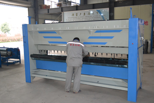質(zhì)檢部師傅師傅正在對大棚保溫被絎縫機(jī)做出廠質(zhì)檢