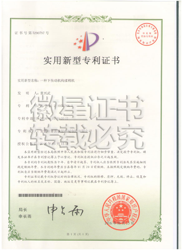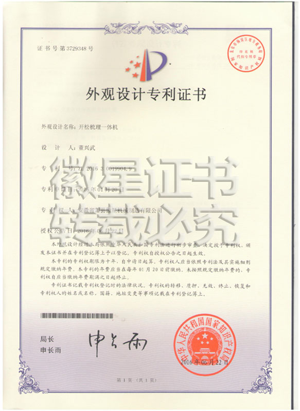 徽星人經(jīng)過20年的努力奮斗,經(jīng)過7000多個(gè)日日夜夜,在董興武先生的帶領(lǐng)下,打造優(yōu)質(zhì)品牌?;招乾F(xiàn)已榮獲20多項(xiàng)國家專利,保證機(jī)器的質(zhì)量,認(rèn)客戶朋友們用上了放心機(jī)器!