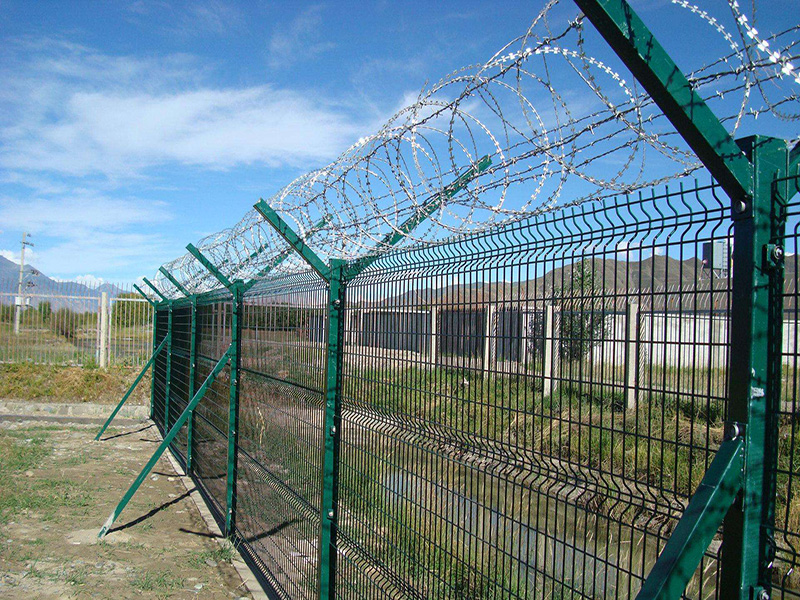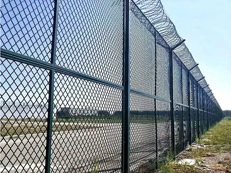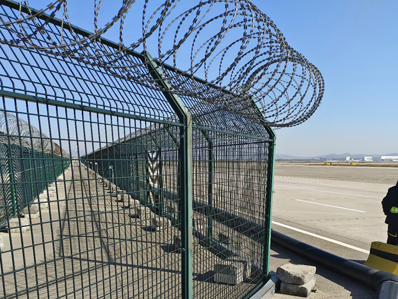機(jī)場護(hù)欄網(wǎng)又稱作“Y型安全防御護(hù)網(wǎng)”,由Y型支架立拄,加強(qiáng)型焊接網(wǎng),安全防盜連接件和熱鍍鋅刀片刺網(wǎng)組成,是強(qiáng)度和安全防御性級別很高的圍界護(hù)欄網(wǎng)產(chǎn)品。被廣泛應(yīng)用在機(jī)場、軍事基地等高安全場所。機(jī)場護(hù)欄網(wǎng)的突出特點(diǎn)就是美觀實(shí)用、安全性高、防攀爬能力好,網(wǎng)體連接方式采用特制SBS緊扣件,有效防止人為的破壞性拆卸,橫向四道折彎加強(qiáng)筋,使網(wǎng)面強(qiáng)度顯著增加。